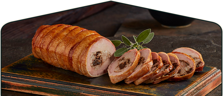 Cuando un solomillo de cerdo horneado se rellena de ciruelas y se envuelve luego en una deliciosa tocineta ahumada, no cabe duda que nace una especialidad