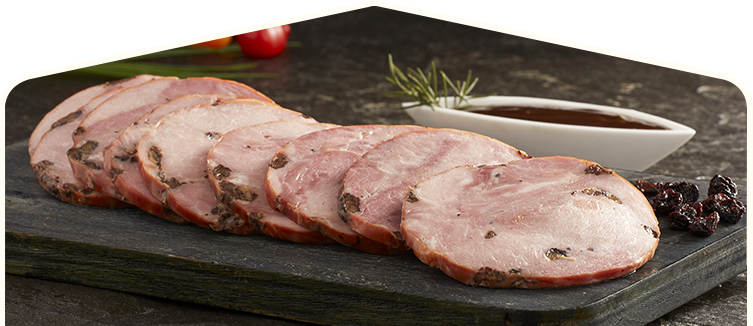Delicioso Jamón embutido hecho a base de trozos de cerdo previamente masajeados e inyectados para acentuar el sabor, y expuestos a un proceso de ahumado natural. ¿El toque final ? Una deliciosa adición de uvas pasas.